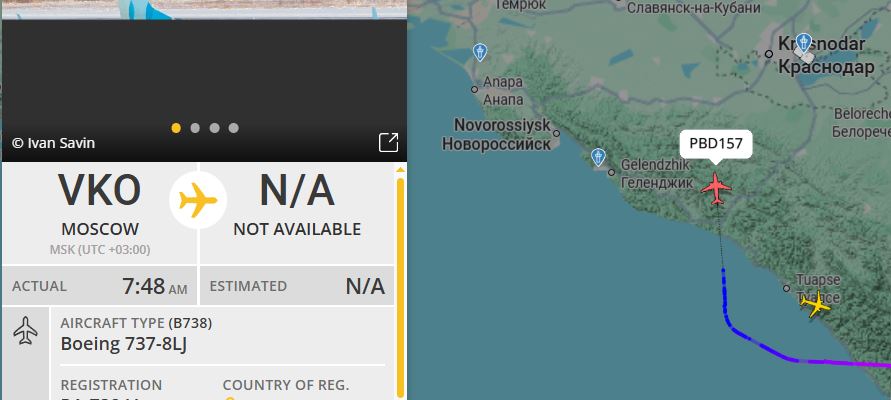 Вот например самолёт летит из Москвы в Краснодар ссылка