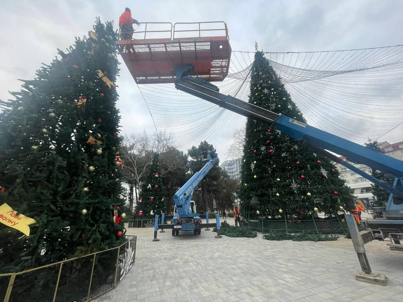 На Театральной площади начали разбирать ёлки.