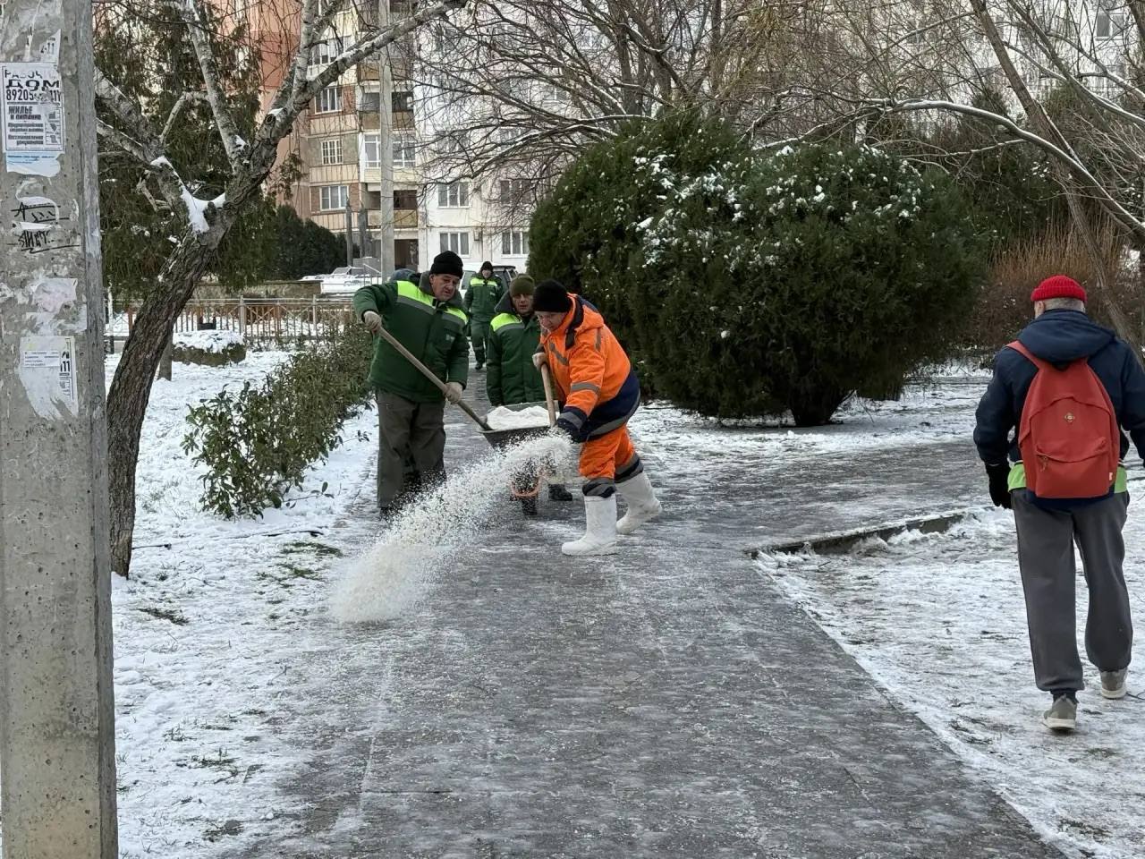 В Анапе продолжается борьба с гололёдом.