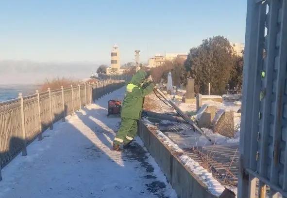 В Анапе приступили к восстановлению упавшего ограждения в районе набережной курорта.