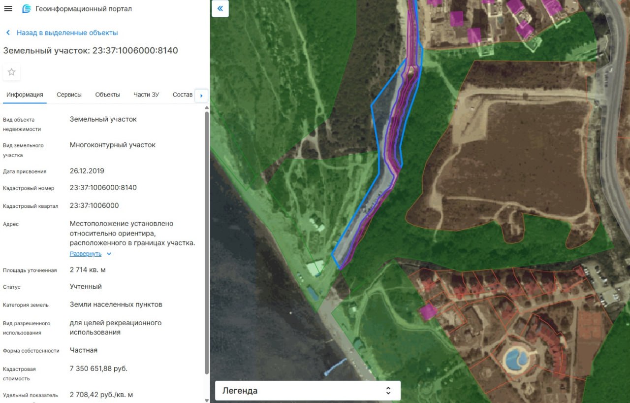 Нарезка участков в районе этого пляжа потрясающая, проезд и проход проходит через несколько участков, в том числе через земли для лесного фонда и для гостиничного обслуживания. Наверное, когда-то там будет порядок и правовой, и санитарный, но это не точно.